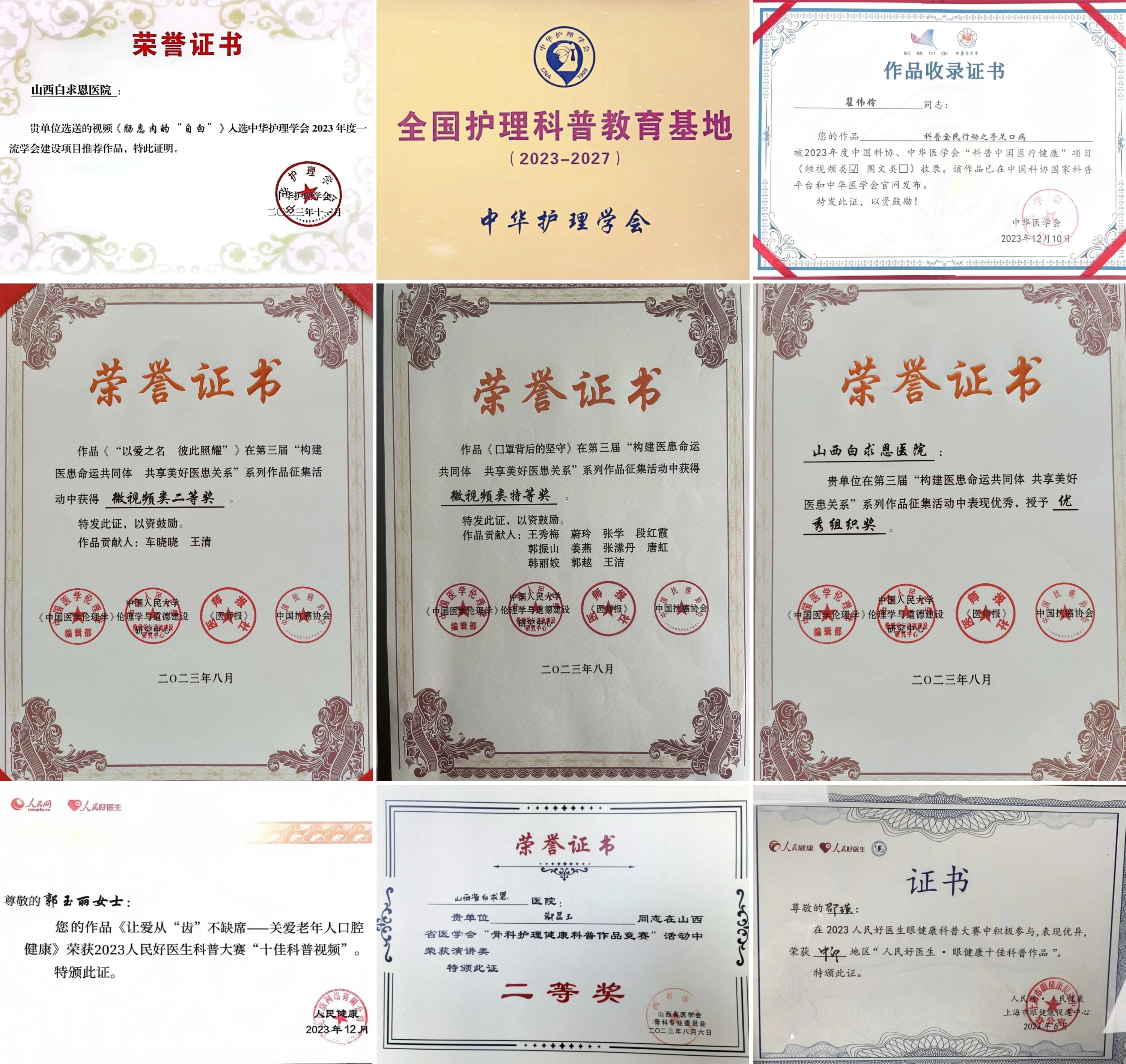 2023年,山西白求恩医院 同济山西医院累计开展各类科普宣讲活动3000余次,参与医护人员2000余人次,覆盖公众6万余人次;开展健康教育大课堂24期、专科护士坐诊50期、10大护理专科门诊,覆盖受众1.3万余人次;组织培训护理科普人员500余人次;择优选取58个病区372个健康教育作品参赛,荣获国家级奖项23项,省级奖项9项;出版科普图书3部,获批省级科普专项课题5项,在国家级/省级媒体刊登护理科普稿件72篇。
