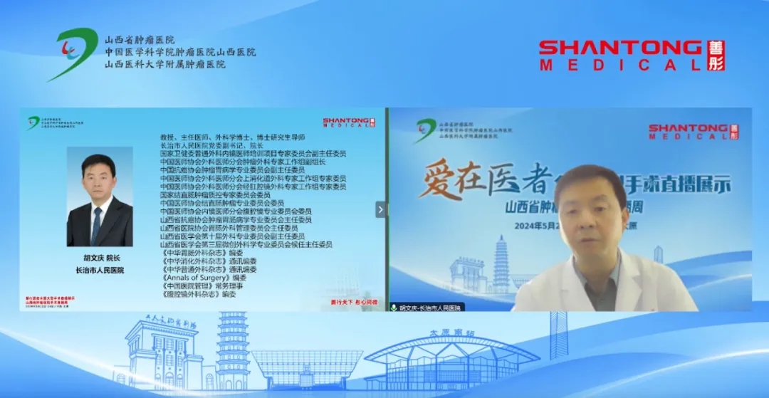 山西省肿瘤医院党委副书记、院长马晋峰,山西省医院协会常务理事单位——长治市人民医院院长胡文庆,佛山市人民医院副院长段荣光,山西省肿瘤医院肝胆胰胃外科副主任高泽锋(主持工作)分别致辞。随后,山西省肿瘤医院肝胆胰胃外科高泽锋、李钧分别进行了精彩的腹腔镜胃癌手术直播演示,并与河北、武汉、广州、江西的多位专家进行了深入的交流。