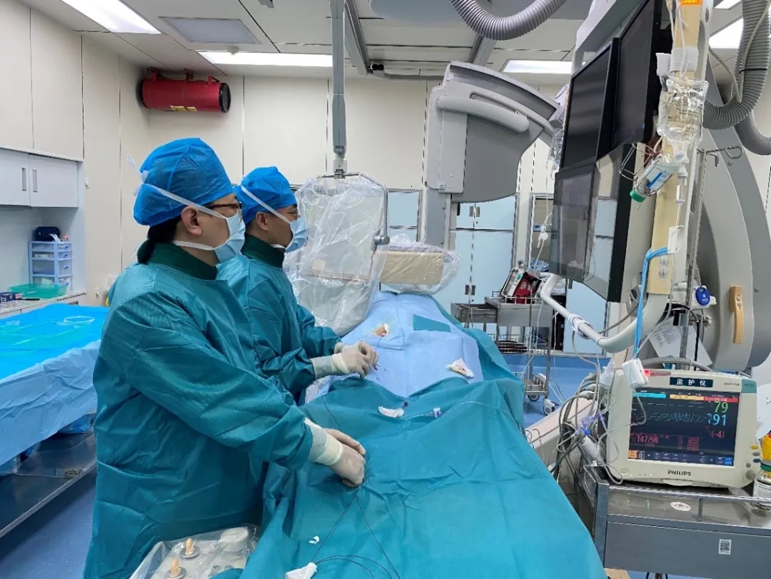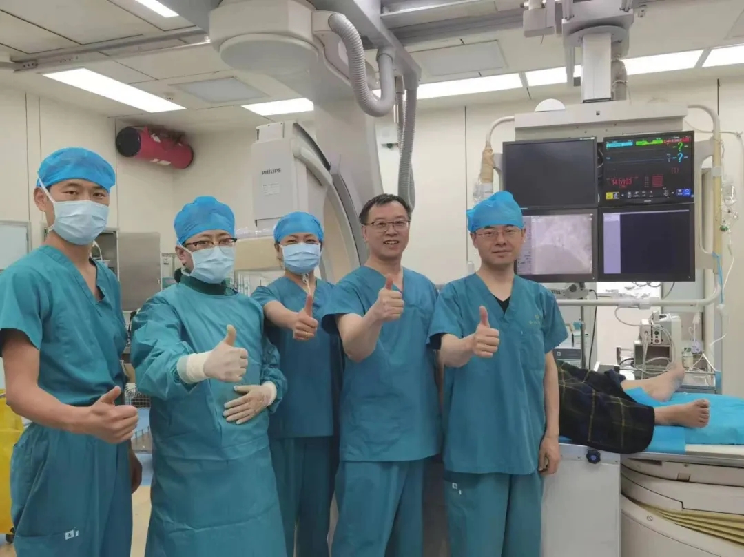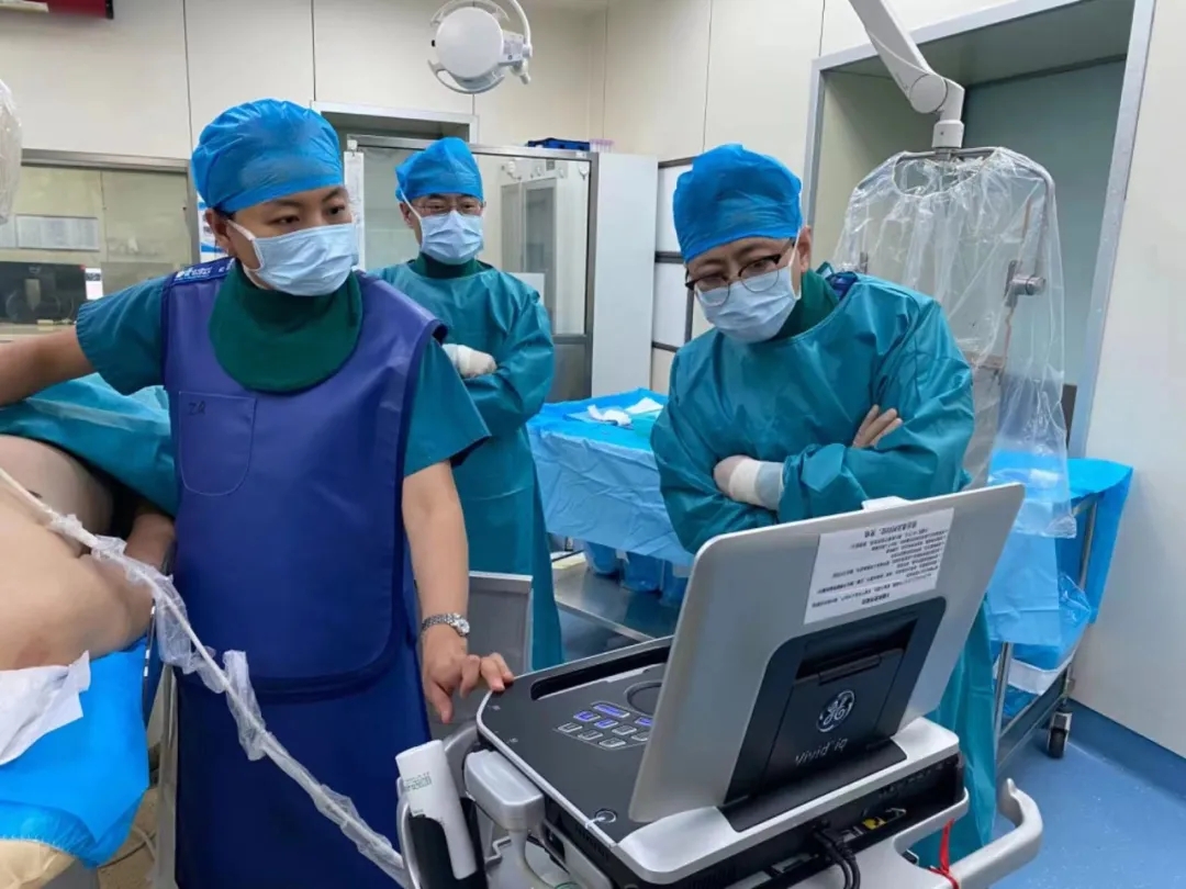 在介入导管室、心脏超声的紧密配合下,周强教授及山西白求恩医院心内科党支部书记高宇平及其团队为赵先生实施了介入封堵术。手术过程中,每一步都严格按照预案进行,医生们以细致耐心的态度确保了手术的圆满成功。