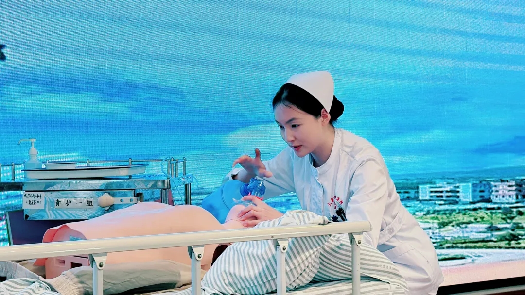 此次竞赛项目为“单人徒手心肺复苏”和“使用简易呼吸器心肺复苏术”。参赛选手现场抽签进行技能展示。比赛现场,选手们仪表端庄、精神饱满,沉着冷静、动作娴熟、沟通流畅、思路清晰,操作过程干净利落,查对、解释、沟通执行到位,充分展现了新时代护理人员扎实的护理专业技能、良好的心理素质及较强的应变能力。