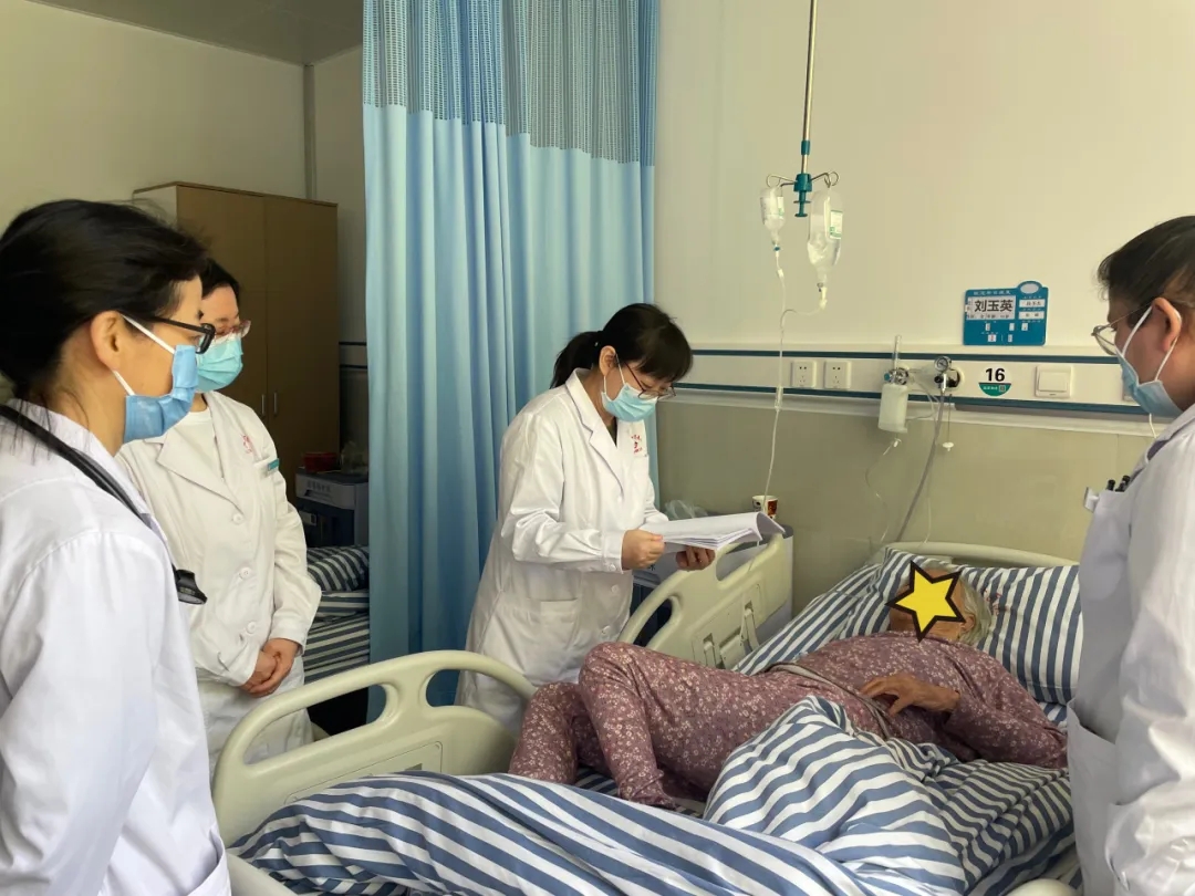 在疑难病例查房中,曹若瑾仔细听取病历汇报,认真查体并分析患者的检查资料,从疾病诊断、治疗及护理方面进行了全面的指导。并与和济医护人员共同探讨了一例多病共存高龄老年患者的治疗方案和护理技巧,为患者的健康恢复和优质护理提供了有力支持。
