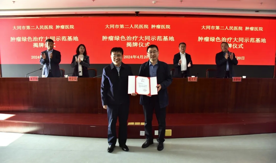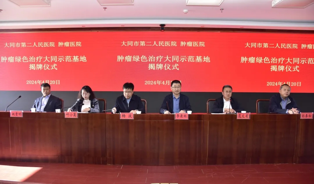 4月20日,山西省医院协会常务理事单位——大同市第二人民医院 肿瘤医院举行“肿瘤绿色治疗大同示范基地”揭牌仪式。北京中医药大学东方医院肿瘤科主任李泉旺教授出席仪式。医院党委书记杨波讲话。医院党委副书记、院长范文有主持仪式。医院领导班子成员及中层干部参加会议。