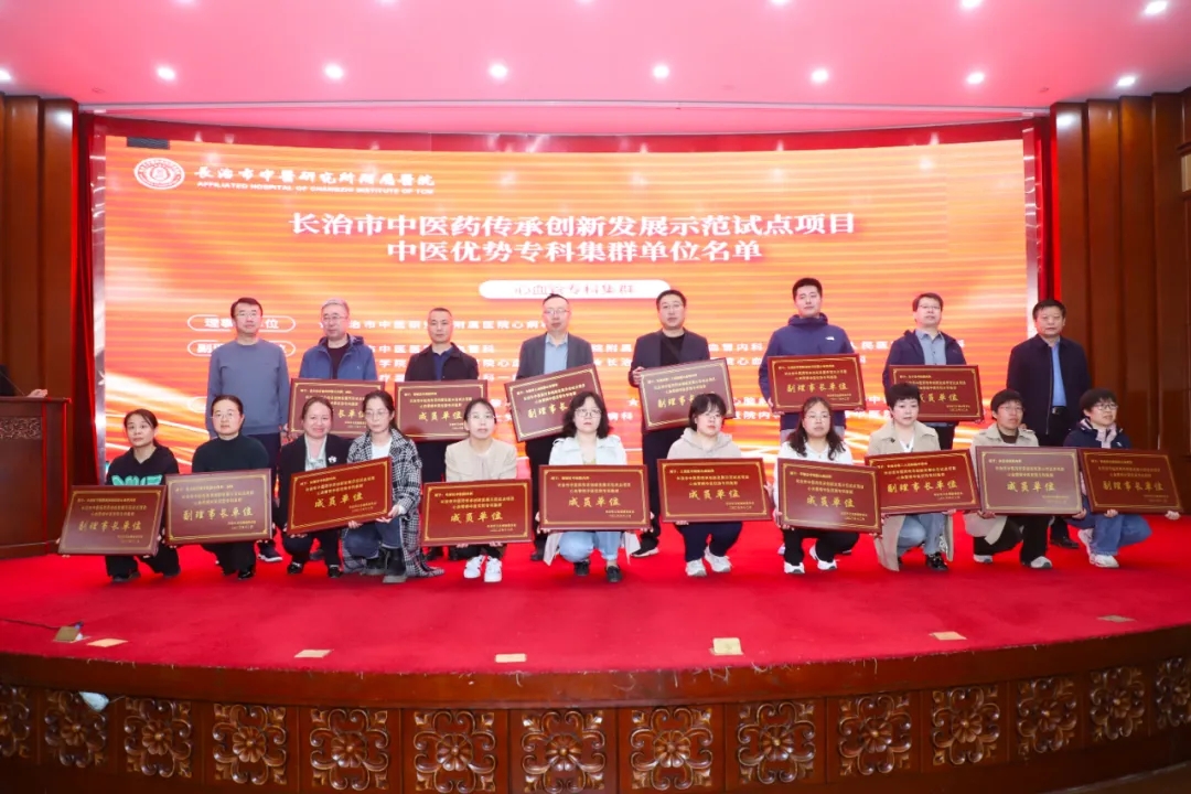 开班仪式上,长治市中医研究所附属医院牵头组建的心血管科、脾胃病科、康复科和风湿病科等四个中医优势专科集群及两个中医经典病房建设科室进行授牌。(索智慧)