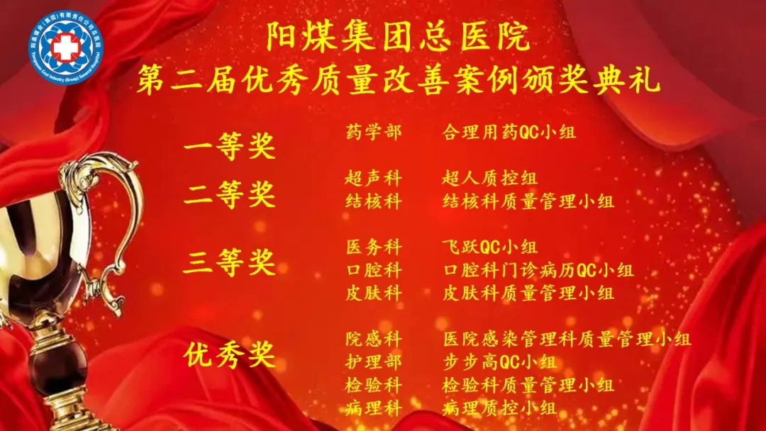 本次质量改善案例成果发表交流会的成功举办,是对阳煤集团总医院质量改善工作的一次全面检验,也是对质量改善活动经验的一次深入总结和广泛推广。(孟平)