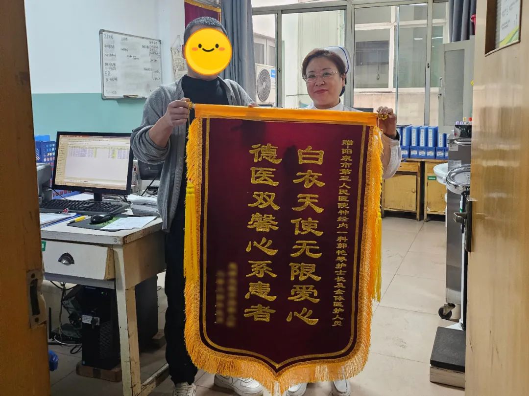 近日,患者王大爷的儿子将一面锦旗送到山西省医院协会常务理事单位——阳泉市第三人民医院神经内一科护理单元,上面书有“白衣天使无限爱心,德医双馨心系患者”字样,以表达对科室医护人员感激之情。