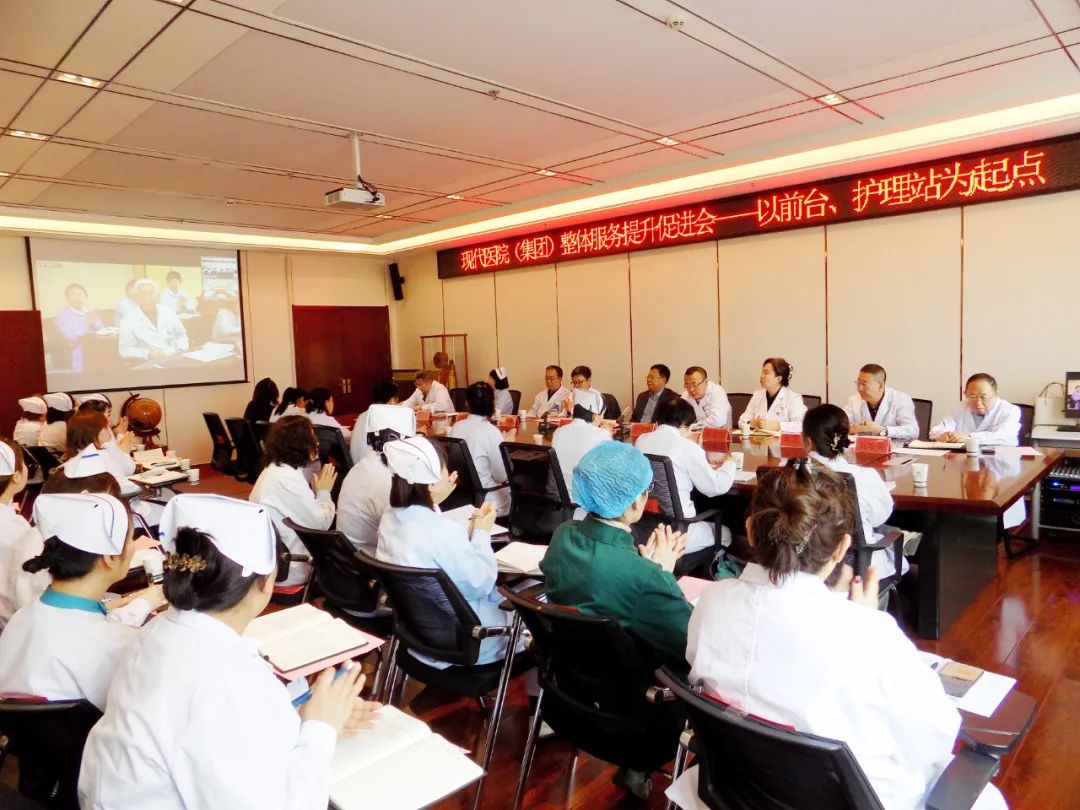 会议在大同五洲心血管病医院举行。大同现代医院(集团)总院长侯泽出席会议。大同市现代医院管理公司总经理、五洲心血管病医院院长卢文举主持。大同现代医院、大同现代脑科医院、大同瑞慈康复医院、大同五洲心血管病医院院领导、前台负责人、各科护士长等人员参加现场会议。朔州现代医院、忻州现代医院相关负责人通过远程视频参加会议。
