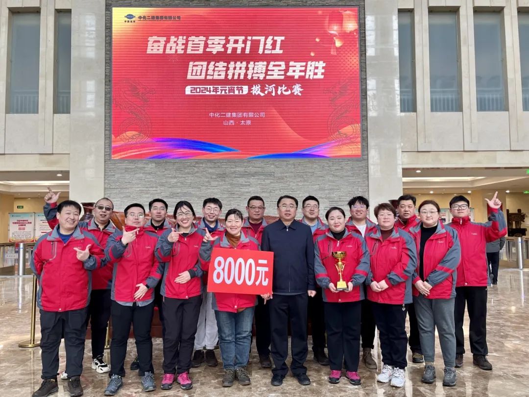 比赛开始后,锣鼓声、助威声此起彼伏,参赛队员扎稳脚步、身体后仰、拼尽全力,运劲发力,奋力坚持。经过多轮比赛角逐,中化二建集团医院代表队获得A组第二名的好成绩!(李子悦)