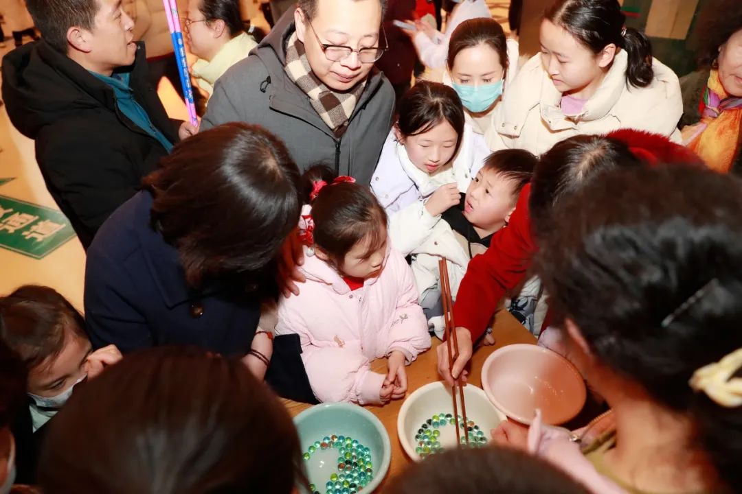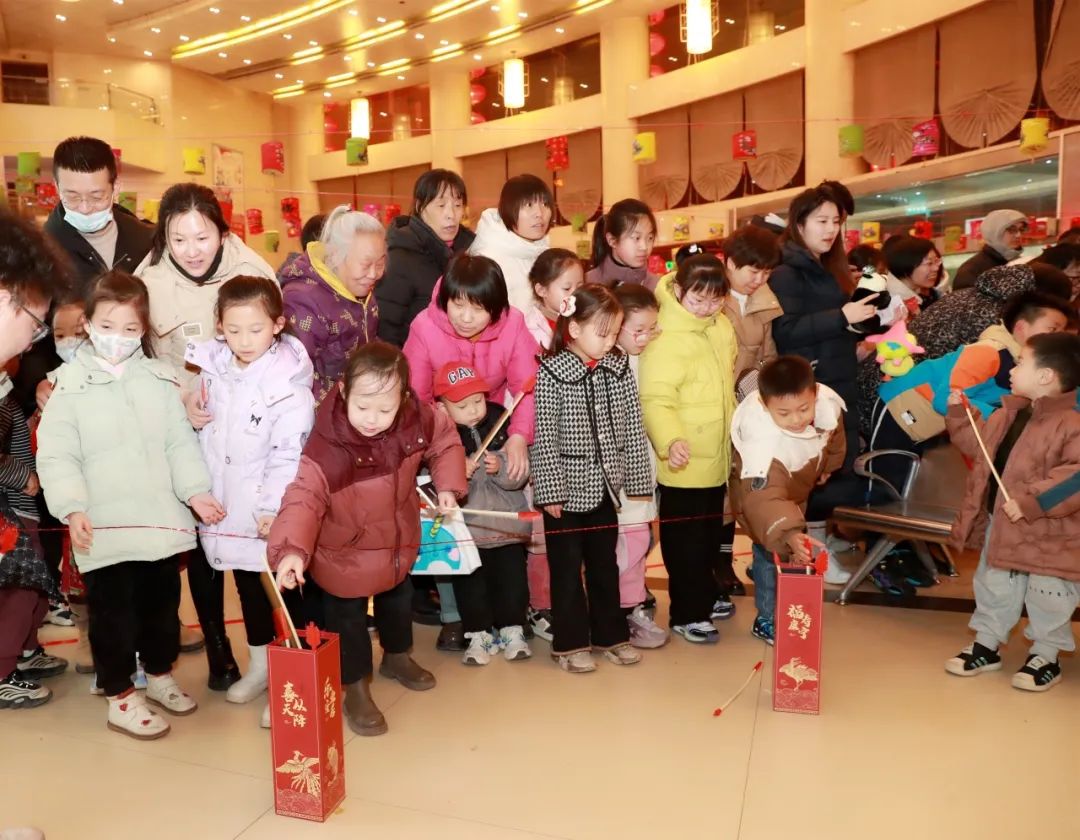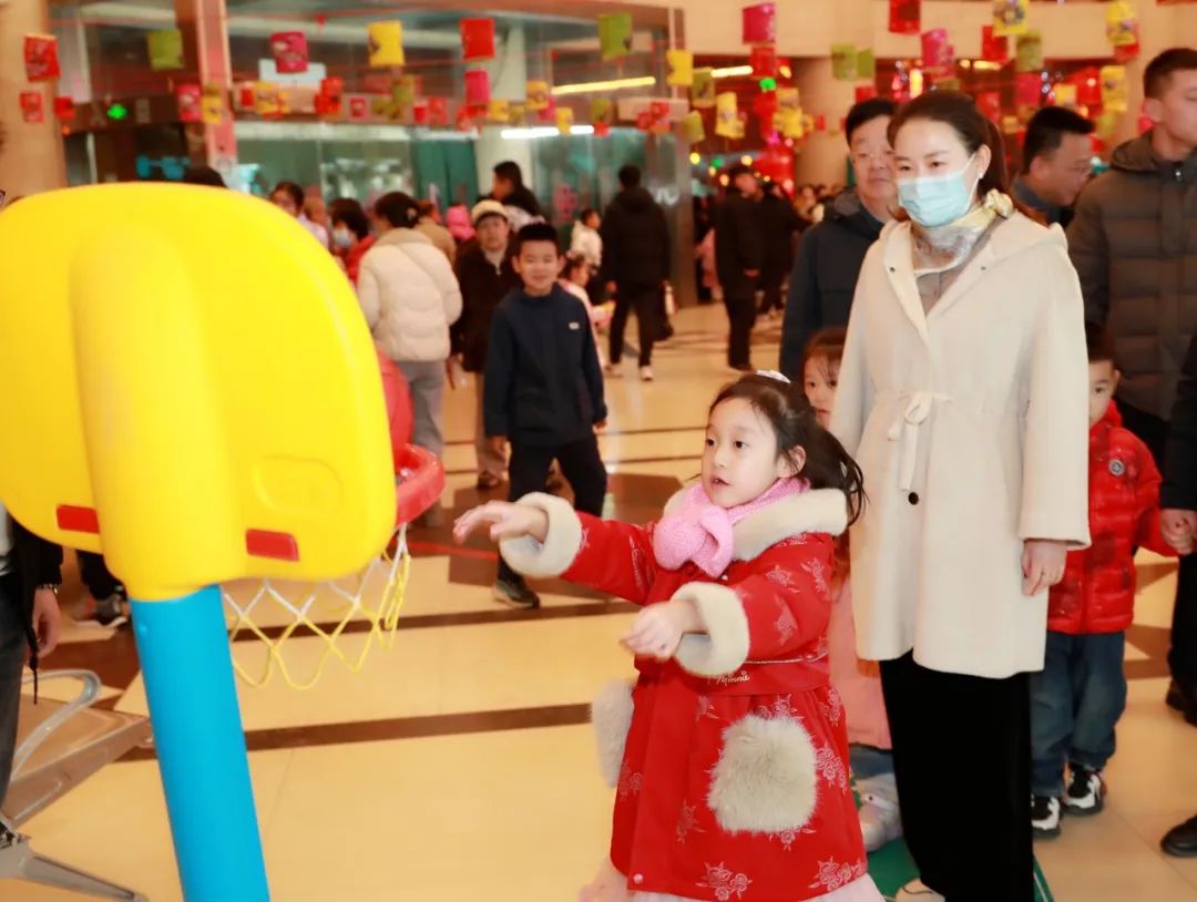 在医院职工舞狮队伴随“锵咚锵……”的锣鼓声,活灵活现地展示姿态万千的“狮子”,热闹开场后,“游客们”在灯谜下驻足,或思索,或讨论,集思广益,启迪智慧;新增加的投壶游戏人气旺,大家都想试试自己的“准头”,纷纷拿起箭矢,凝神静气,瞄准壶口,然后用力投出,箭矢在空中划过一道优美的弧线,发出“嗖嗖”的声音,最终落入壶中;夹玻璃珠游戏前围满小朋友,大家全神贯注、小心翼翼地将玻璃珠夹到指定位置;对套圈,大家激情澎湃,努力套取自己心仪的奖品;蒙眼贴鼻子游戏现场,大家凭感觉认认真真把“鼻子”贴在各个不同位置,惹得众人开怀大笑;投篮现场时不时传来欢呼声,大家纷纷为投中者鼓掌喝彩;兑奖处人山人海,大家拿着奖券有序排队领奖。