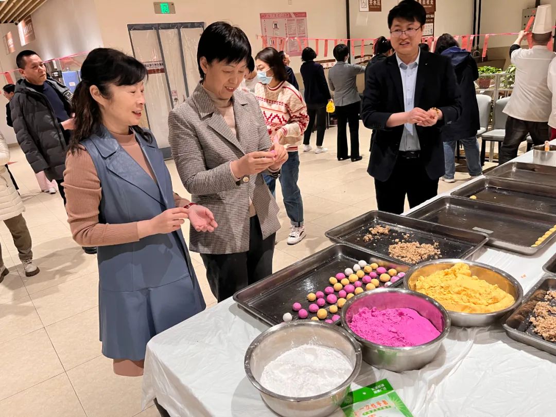 活动包括包汤圆、猜灯谜两个环节。工会提前准备了制作汤圆需要的糯米面粉和馅料。员工们积极参与,相互探讨制作技巧。随着揉面、拌馅、搓转,一个个汤圆摆满了餐桌。看着满意的成果,大家的脸上都洋溢着开心快乐。
