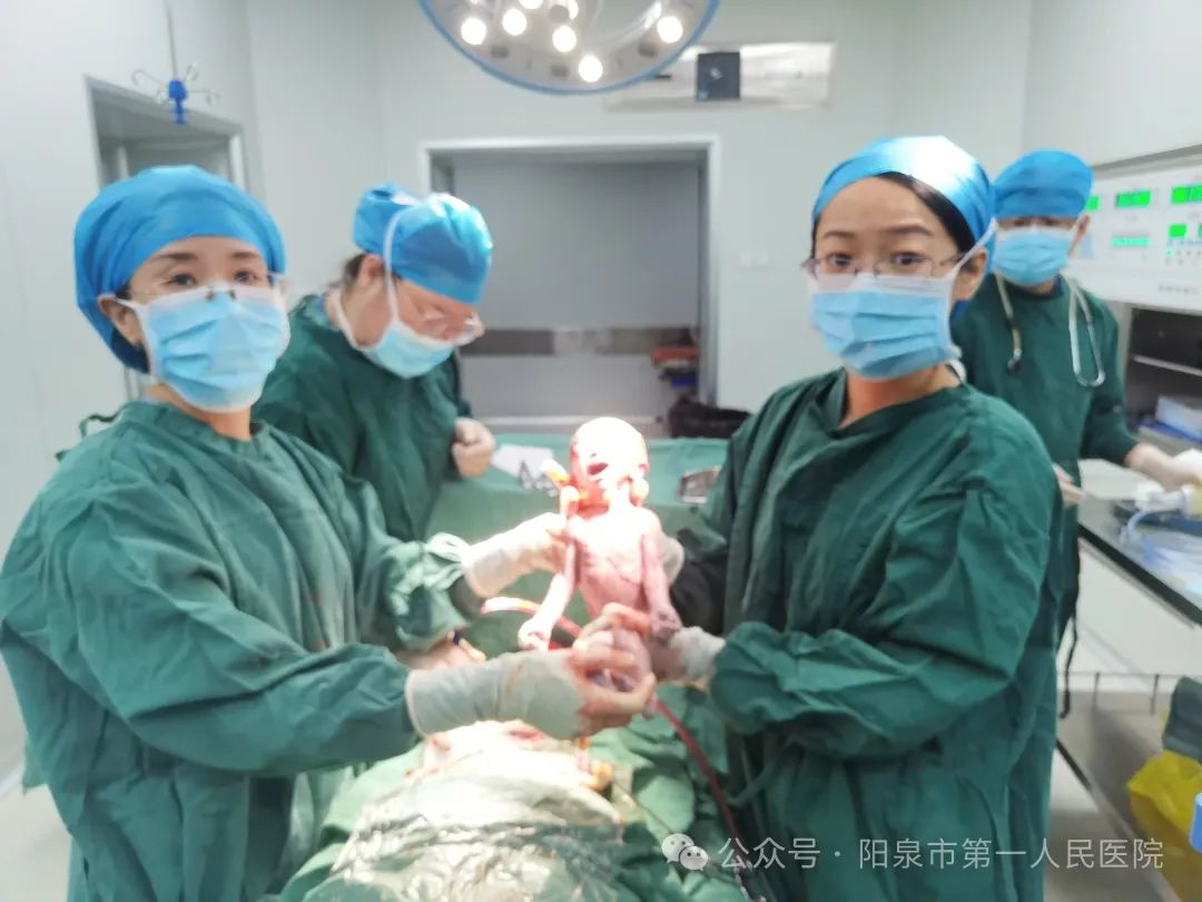 病例二:足月孕妇,由救护车转入阳泉市第一人民医院产科,患妊娠期高血压继发急性左心衰竭,瘢痕子宫,已临产,孕妇和胎儿随时有生命危险。医务科组织MDT团队,多学科会诊快速治疗,紧急进行剖宫产术,母子平安。
