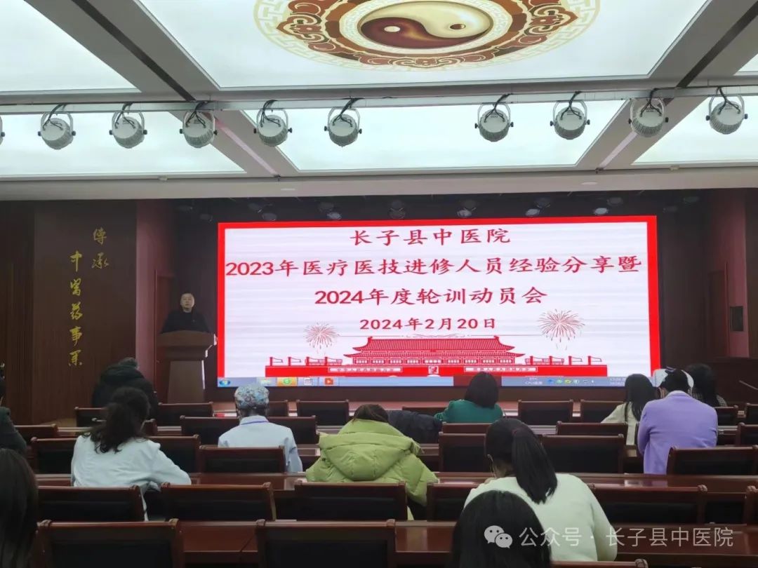 2月20日,山西省医院协会理事单位——长子县中医院召开2023年医疗医技进修人员经验分享暨2024年度轮训动员会。院领导班子、临床医技科室主任、2023年度进修医师及2024年度轮训人员等50余人参加会议。