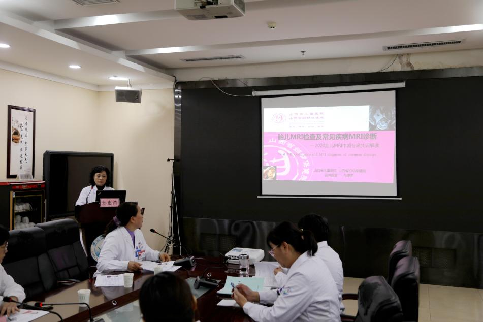 山西省儿童医院磁共振室主任孙惠苗教授详细讲解了青少年女性附件扭转的影像学诊断、胎儿MRI检查共识及常见病MRI表现;副主任医师武艳君教授解读了新生儿颅脑常见疾病MRI诊断;孝义市人民医院影像科主治医师张启寿汇报了儿童附件扭转的影像检查病例,并针对病例进行了讨论。孝义市影像界从业人员,儿科、妇产科、急诊及普外科的科室主任、骨干医师等参加培训。