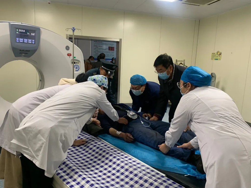 10分钟后,伤者到达河津市人民医院急诊科,急诊医护人员早已在门口等候。冯景民向急诊医生介绍伤者受伤情况。山西省人民医院常驻专家、急诊科主任杜贤荣立即开辟绿色通道,并第一时间汇报医院总值班,在没有家属陪同的情况下,由医院总值班签字展开紧急救治,急诊CT检查,入住神经外科。目前,伤者正在进一步治疗之中。