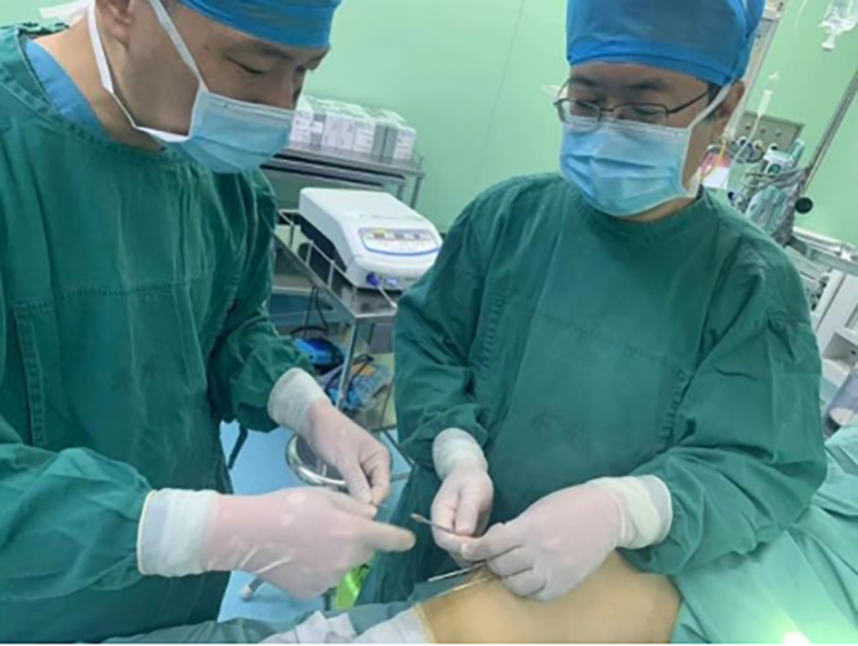 髌骨骨折是一种临床常见骨折,通常需要行切开复位内固定手术治疗。在沟通病情过程中,武海峰了解患者和家属的治疗意愿,告知他们目前有三种治疗方案可以选择,分别是保守治疗、传统手术、微创手术。髌骨骨折保守治疗,长时间外固定可能会导致关节僵硬、肌肉萎缩、功能恢复差等情况的出现;传统手术开大刀,手术出血多、创伤大、美观度差、内固定可靠性低,术后恢复慢;微创手术适合轻度移位患者,手术切口微小,创伤小,出血少,内固定可靠性高。与前两种治疗方案相比,经皮复位髌骨骨折内固定微创小切口手术具有美观度高,功能影响小,术后康复快,感染率低、疤痕粘连少、膝关节僵硬发生率低等优势。经科内讨论,审慎考虑,结合患者和家属意愿,最终决定选择行髌骨骨折经皮复位微创内固定术。