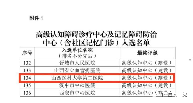 日前,国家卫生健康委能力建设和继续教育中心公布2023年高级认知障碍诊疗中心和记忆障碍防治中心遴选结果,共有406家单位入围。山西省医院协会副会长单位——山西医科大学第二医院名列其中,成为国家高级认知障碍诊疗中心建设单位。