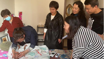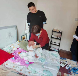 入户访视中,病人服务管理科主任周秉霞向患儿家属询问了住院期间的就诊感受,诚恳地请家属对医院的服务提意见和建议。新生儿重症监护室护士长王俊玲为“小爱”监测经皮胆红素值,代继萍副主任医师进行行为测定,护士吕改玲进行听力筛查,主管医师霍启富陪伴左右。看着矫正胎龄37周的“小爱”各项指标均正常,大家倍感欣慰,又指导家长对患儿进行抚触及功能训练,有效提高患儿的治疗效果和生活质量,真正把早产儿康复技术延伸到每个家庭。