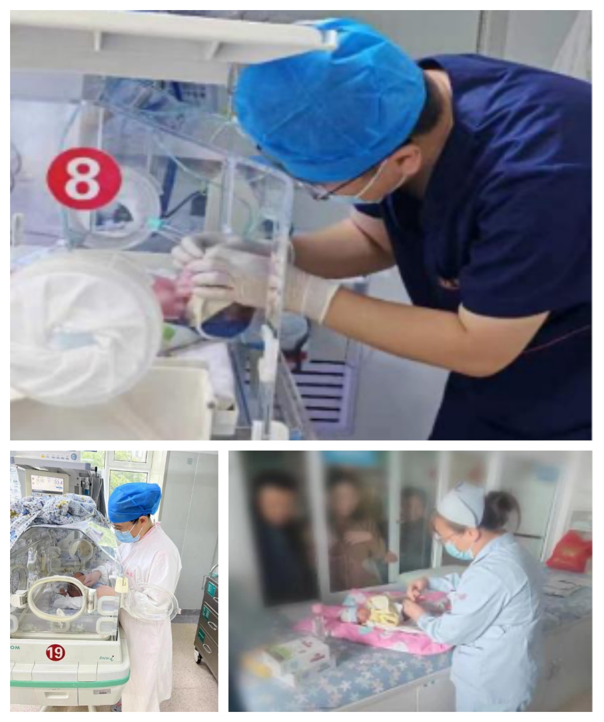 为了救治“小爱”,重症护士在“小爱”细如棉线的血管上穿刺,一针见血,打开了生命的通道;入住保温箱、心电监护、血氧饱和度监测、采集血标本、血气分析、留置胃管……抢救措施紧张有序进行着。主管医师霍启富医生第一时间给予患儿气管插管,护士麻利的吸痰,运用肺表面活性剂,人工辅助通气后患儿血氧饱和度在90%以上行有创呼吸机辅助呼吸。大家争分夺秒,与时间赛跑,动作之快而又不失温柔。