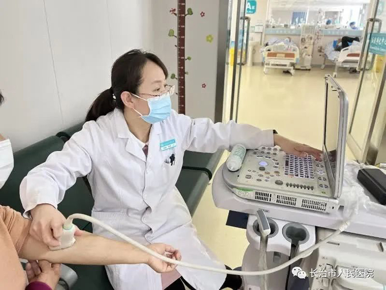 长治市人民医院设置24小时绿色通道,为血液透析患者开展内瘘急诊溶栓、急诊取栓、急诊PTA、急诊中心静脉置管等,为透析患者生命线保驾护航!该院肾脏内科是长治市乃至山西省较早开展血液净化和肾穿刺活检的科室,历经30年的不懈努力和开拓进取,现已成为集医疗、科研、教学于一体的肾脏病诊疗中心,已建成医疗设施齐全、人才梯队合理、学术思想活跃、技术精湛、诊疗规范、服务周到的优势学科。(王爱平)
