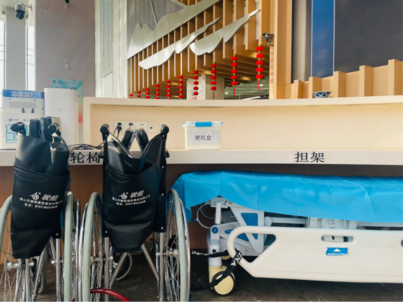 老年患者来院,从医院大门到进入门诊,均采取无障碍设计,一路畅通;进入门诊内部,全门诊均重新更换了指引标识,醒目、简明、易懂的标识更利于老年患者就医;地面做好防滑措施,制订了老年人防跌倒的应急预案;设置无障碍卫生间等设施,配备轮椅、平车等辅助移乘设备;门诊大厅为老年患者提供老花镜、测量血压、测量身高体重等服务;门诊叫号系统调大了音量,为老年患者提供便捷。