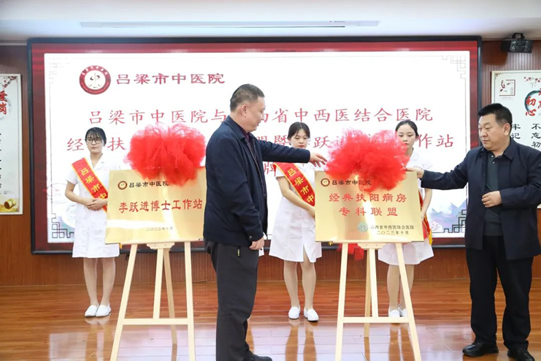 10月21日,山西省医院协会副会长单位——山西省中西医结合医院经典扶阳病房李跃进专家团队与山西省医院协会理事单位——吕梁市中医院签署经典扶阳病房专科联盟合作协议,举行经典扶阳病房专科联盟及李跃进博士工作站揭牌仪式。