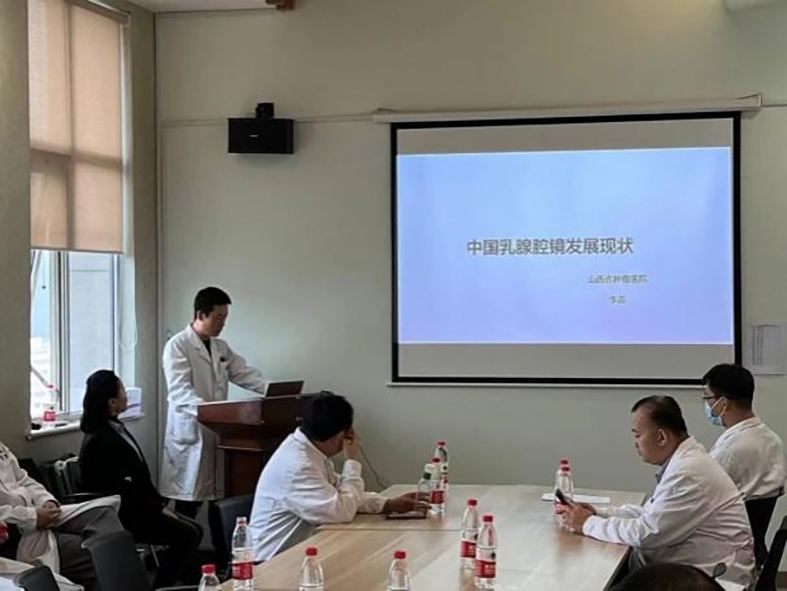 会上,李嘉副主任医师作《中国乳腺腔镜发展现状》专题讲座,介绍目前国内乳腺腔镜发展情况和乳腺腔镜理论知识。通过手术视频,讲解乳腺腔镜的流程化手术步骤、游离方式、解剖层次、并发症的处理等知识要点。同时展示了乳腺外科近期开展的腔镜下男性双乳腺体切除和腔镜下保乳手术,让在场学习人员直观感受到腔镜技术的优势。手术室李博讲解了腔镜系统规范使用与维护的相关事项。技术人员王小芒、孙玥等进行了腔镜模拟训练基础技能模块讲解,同时帮助大家进行腔镜下相关操推动作训练。现场学习氛围浓厚。(齐立强 李嘉)