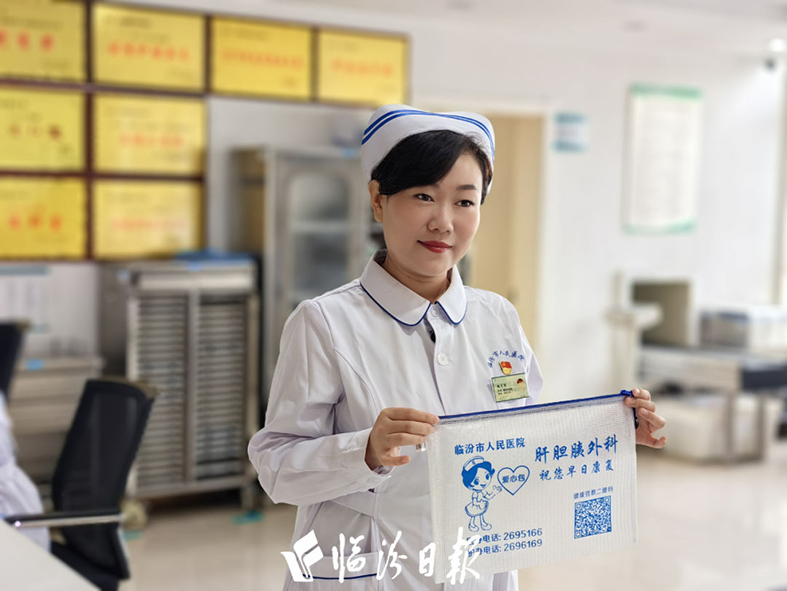 在肝胆胰外科的无陪护病房,经常能够看到手术后的病人腰缠腹带。畅文玲介绍:“以前,手术后患者的引流管是被压在腹带里面的,后来我们下大力气对腹带进行了改良,增设了两个‘天窗’,这样引流管就可以从‘天窗’里面拉出来,既保障了引流管不会在加压包扎的护理过程中受到挤压,又方便我们观察、护理和更换引流袋。”为了避免术后引流管脱落,畅文玲团队开动脑筋,发明了导管固定贴,可以同时固定2到3根引流管。针对术后肠漏患者的肠液会不断渗出、清洁十分困难的问题,她带领团队又发明了引流液外渗自制收集袋,能够很好地把患者漏出来的肠液收集到袋子里面,减少患者皮肤溃烂和烧伤的情况,减轻痛苦。