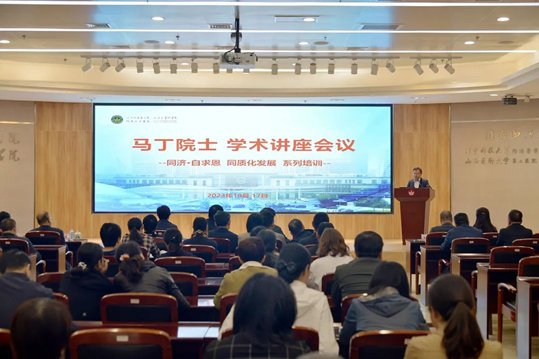 为高质量推进国家区域医疗中心建设,进一步提升医院学科建设内涵,10月17日,山西省医院协会副会长单位——山西白求恩医院 同济山西医院特邀中国工程院院士、国家临床医学中心妇科肿瘤医学中心负责人、同济医院妇产科主任马丁教授来院进行交流讲学。省卫生健康委医政医管局局长任小勇,山西白求恩医院党委副书记、院长刘先胜及医院领导班子成员出席。医院各行政部门负责人,各党支部书记,各临床、医技科室(含病区)正职主任、正职护士长参加会议。