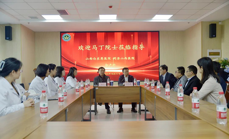 会前,马丁院士与刘先胜在妇产科教研室与科室医护人员举行座谈。马丁院士表示将尽己所能,推动山西白求恩医院妇产科的学科建设、科学研究、人才培养,使其更好地为三晋百姓提供全生命周期的连续健康服务,最大限度保障人民群众的生命健康安全。(许文辉 韩婧)