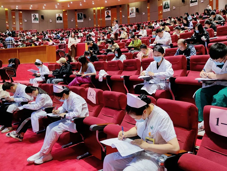 为使考核达到预期效果,院感办在前期精心筹划,根据各科室人员名单和排班情况,按一定比例随机抽取不同职称、不同专业人员参加考试。为确保被抽考人员能如期参加考试,院感办在考试前一天和各科室逐一进行核实,最终确定312人参加,涵盖全院63个临床医技科室,其中高级职称67人、中级职称128人、初级职称117人,有效覆盖医院不同专业、不同职称人群。整个考试过程秩序井然,参考人员积极应考、认真作答,考试合格率达100%,形成了以考促学,以考促改,以考促用的良好氛围。