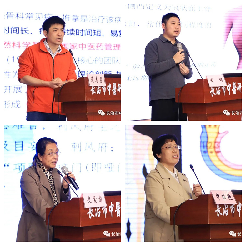 此次培训班对岭南林氏正骨推拿的学术经验和技术方法进行了深入探讨。广州中医药大学岭南林氏推拿研究所副所长范志勇、田强,山西省名中医、长治市中医研究所附属医院脑病科原主任史爱菊,长治市中医研究所附属医院心病科护士长申丽艳等专家,分别以《林氏正骨推拿指南解读》《特发性脊柱侧弯的手法治疗经验》《针刺风府、哑门加海泉穴治疗中风后失语症》《脚踝针临床中的应用》等为题,结合PPT和大量资料,深入讲解了岭南林氏正骨推拿手法在疾病治疗中的技巧和优势,并分享经验与心得体会,为大家带来许多启发与思考。