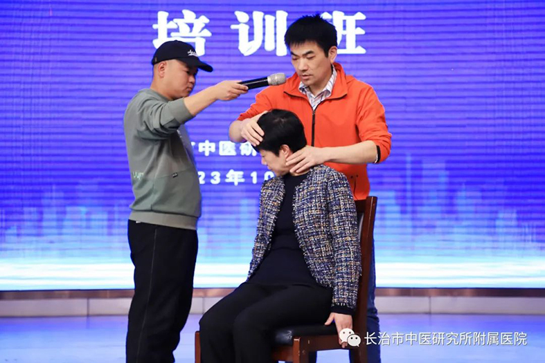 理论学习之余,专家与学员互动,邀请大家亲身体验岭南林氏正骨推拿手法,真正做到面对面“传经授宝”;并到长治市中医研究所附属医院国医堂坐诊,深入临床科室进行现场查房与诊疗。