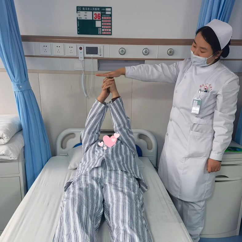 老刘,2023年初办理的退休手续,本该开启美好的退休生活,却突然发病困在床上,生活起居都需要他人照顾。初到康复医学科时,老刘很失落,拒绝配合治疗。为帮助老刘走出自我封闭状态,走向康复,康复科医护轮流到床旁陪他聊家常,进行心理护理;制定了康复护理计划,对他进行抗痉挛体位的管理,每天指导督他做握手训练、桥式训练等偏瘫操;科室进行多元化健康教育时,务必让老刘参加,无论是讲课、看视频还是做训练、游戏互动。经过两个月的治疗,老刘的偏瘫得到明显改善,在扶持下可以缓慢行走、言语障碍得到改善、反应力有了明显改善,愿意与人简单交流,“我想站起来”“我想自理”“我不想成为家人的负担”充斥内心。