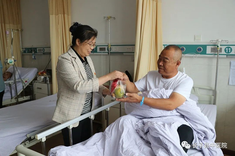 节日期间慰问患者是长子县中医院的传统,传递着医院对患者的衷心祝福,力求对每位患者做到贴心的呵护关怀,希望来就医的每一位患者都能感受到医院的人文关怀以及家一般的温暖,切实将敬佑生命、关爱患者的服务宗旨落到实处。