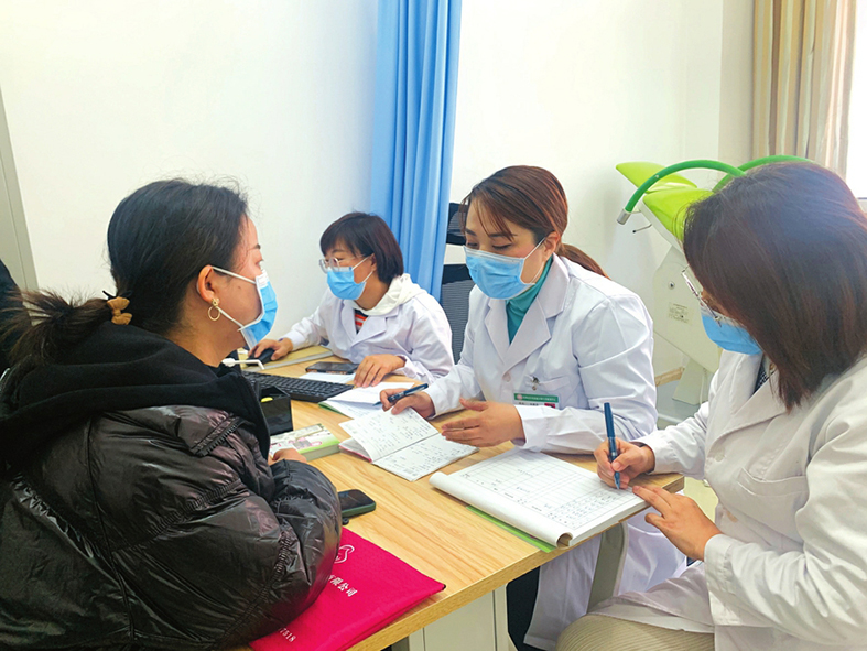 ▲每周二,毕星宇博士(右二)准时在忻州市妇女儿童医院坐诊。