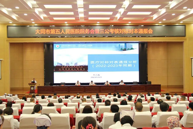 为全面、精准把握医院当前的运行质态和发展动态,对标找差,扎实有力推进医院高质量发展,山西省医院协会常务理事单位——大同市第五人民医院于日前召开“三公考核对标对表分析通报会”,对“国考”监测指标、医院运行、医疗质量安全等情况进行全面反馈梳理。院领导班子成员、全体职能科室负责人及临床、医技科室主任、护士长、质控医师参加会议。