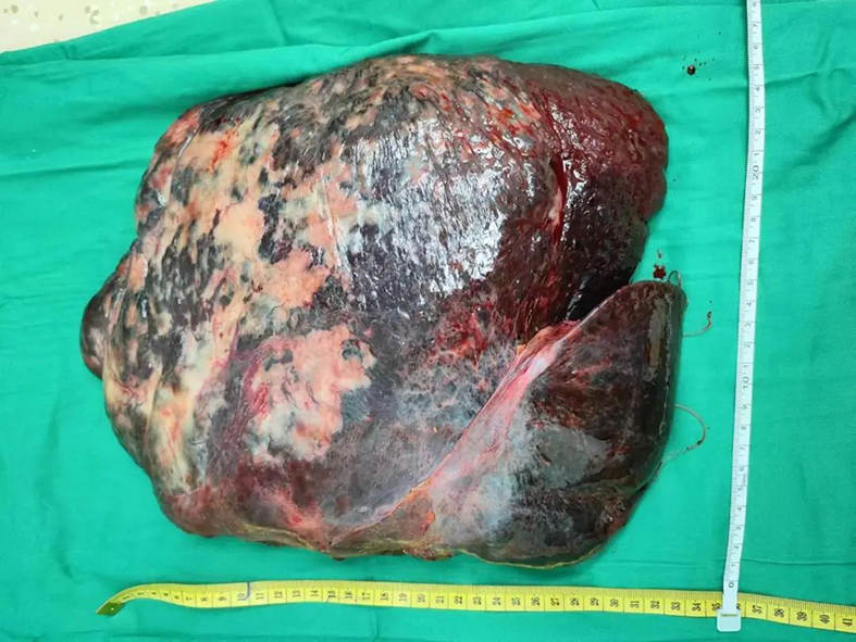 本次手术用时约2个小时,切除瘤体重量达4kg。