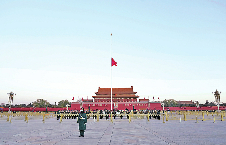 ▲12月1日,北京天安门下半旗志哀,悼念江泽民同志逝世。