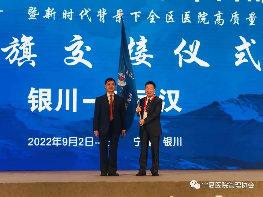 为了继续传承中西部医院大会精神,延续大会品质,本届中西部医院大会设置了会旗交接仪式。经过中西部相关省区协商,第三届中西部医院大会将由湖北省医院协会承办,由宁夏医院管理协会会长崔学光给第三届承办协会-湖北省医院协会副会长胡仁崇传递第三届(武汉)中西部医院大会会旗。