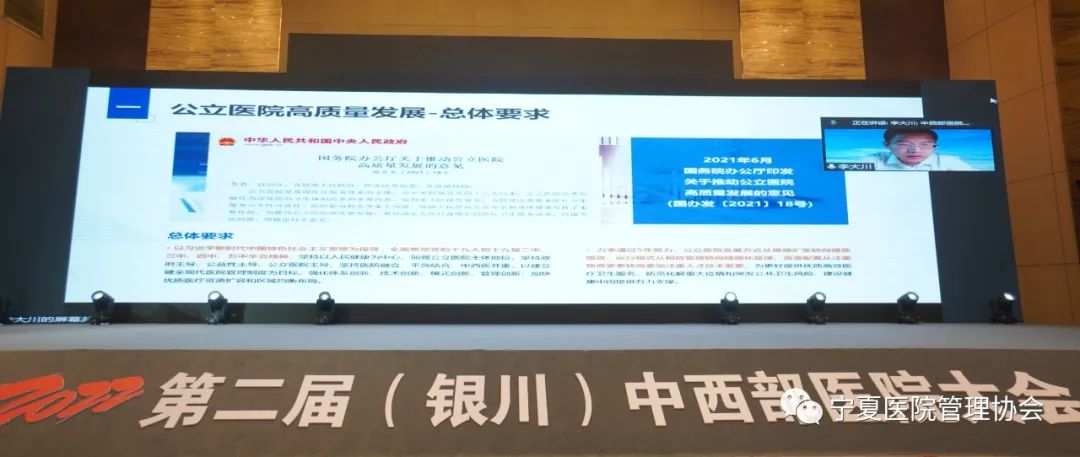 宁夏医院管理协会崔学光会长主持开幕式,崔会长指出,进入新发展阶段,公立医院机遇与挑战并存,希望与困难同在。站在新的历史起点,公立医院的发展已经从“量的积累”进入“质的提升”过程。我们必须正确认识当前卫生事业发展趋势以及人类疾病谱的变化,因势而谋、应势而动、顺势而为,切实掌握人民的健康需要和病人的就医需求,扩大服务范围,延长服务链条,在疾病防治、诊疗救治、康复养老、孕期保健等全生命周期服务中谋求新的发展思路,实现医院高质量发展的体系创新、技术创新、模式创新、管理创新。