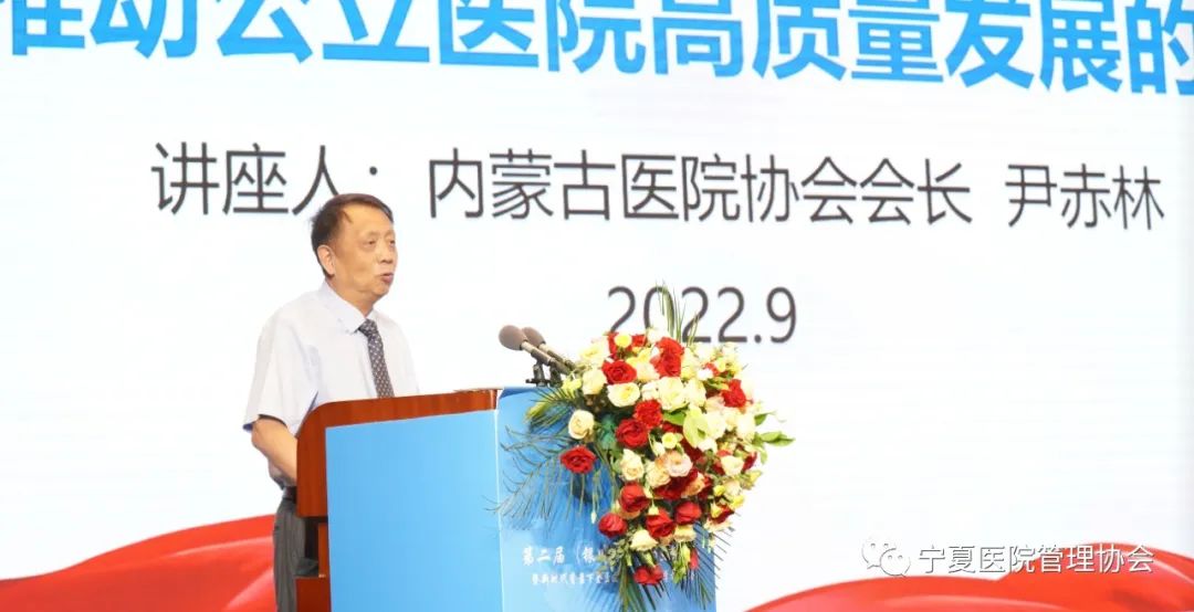 内蒙古医院协会会长尹赤林讲解了《推动公立医院高质量发展的思考》