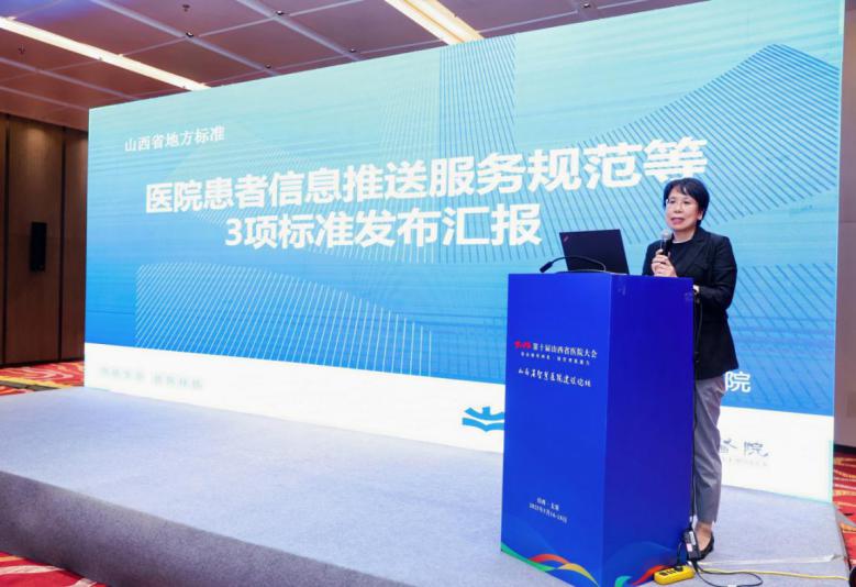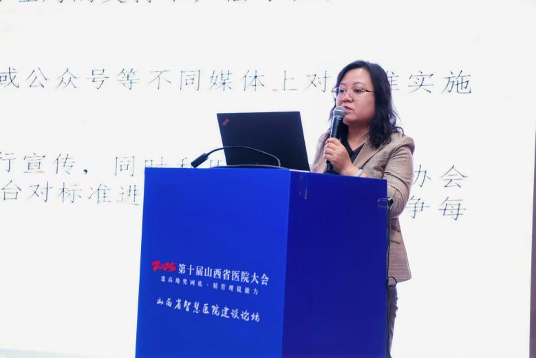 ▲山西医科大学第一医院住院部主任弓玉红《医院患者信息推送服务规范等3项标准发布汇报》