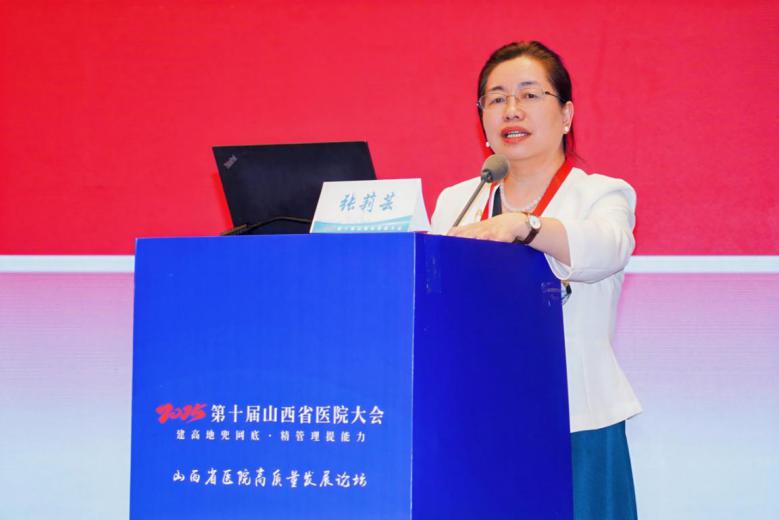 ▲山西省医院协会秘书长韩荣莲主持论坛