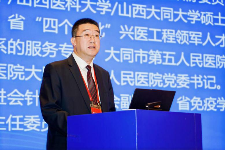 ▲大同市第五人民医院党委书记尉杰忠主持论坛