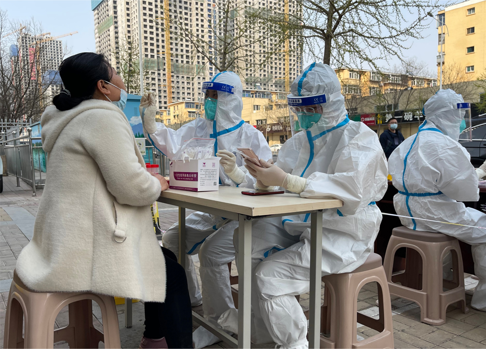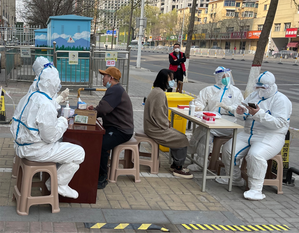 4月4日,省城平阳路街道长治路社区防疫一线,白求恩医院医护人员、社区工作人员、各单位下沉支援人员奋战前线,全力保障居民的生命健康安全。许多志愿者也踊跃报名、主动参与,与众多防疫一线工作人员并肩作战。面对疫情,他们无惧无畏,奋战在第一线,扛起了守牢龙城的任务和使命。