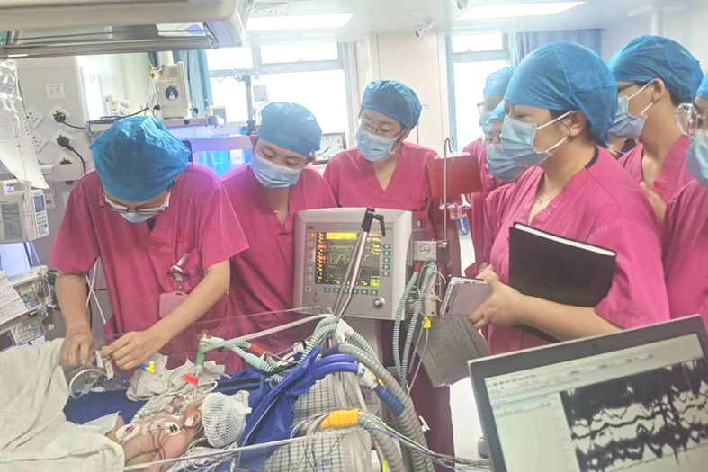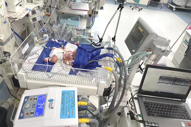 在对症支持治疗的基础上,陈玲组织抢救团队积极完善各项检查,综合评估后,认为患儿罹患新生儿缺氧缺血性脑病(HIE重度),第一时间启动亚低温治疗手段,开展了该院第一例亚低温治疗新生儿HIE技术。同时实施有创呼吸机辅助通气、抗感染、补充凝血因子、降颅压、静脉营养等治疗手段,成功将患儿从死亡线上拉回。