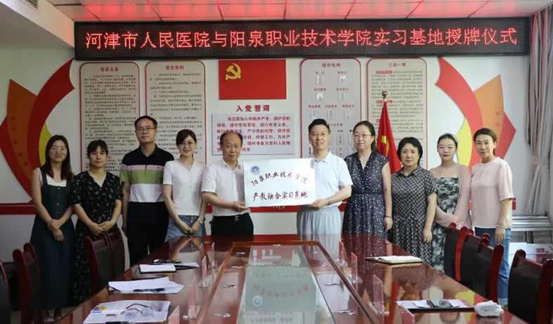 7月26日,山西省医院协会理事单位——河津市医疗集团人民医院举行阳泉职业技术学院产教融合实习基地授牌仪式。阳泉职业技术学院副院长王海平、河津市人民医院薛斌副院长出席仪式。