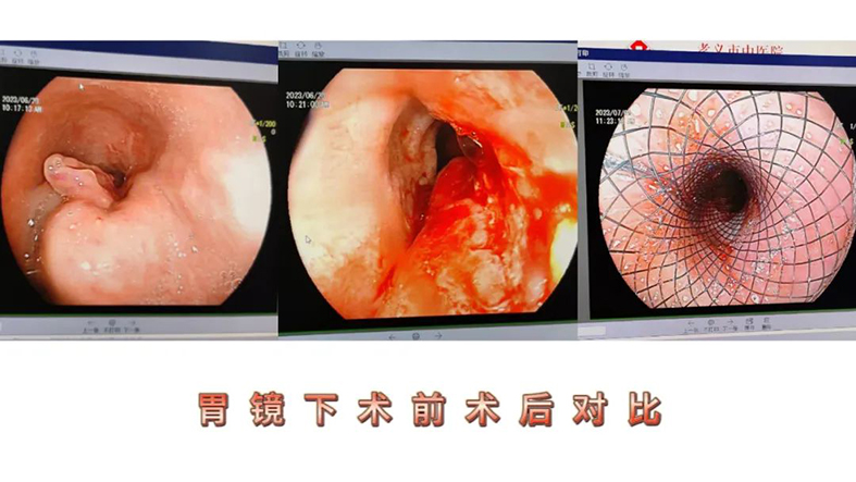患者系81岁老年男性,因进食困难来孝义市中医院脾胃病科就诊。经综合评估、相关科室会诊以及与患者家属充分沟通后,治疗团队决定为患者实施内镜下支架置入术,解决患者进食困难的问题,提高患者的生活质量。在内镜室团队的默契配合及麻醉支持下,患者顺利置入食管覆膜支架。术后,脾胃病科予以患者口服中药散剂治疗,以培补正气。