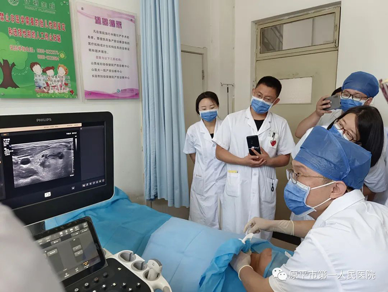 2023年7月16日,山西省医院协会理事单位——原平市第一人民医院内分泌科牵头,超声科、检验科、病理科、普外科共同协作,成功完成该院首例甲状腺结节细针穿刺活检术(FNA)和微波消融术。山西医科大学第一医院肿瘤与血管介入科赵超副主任医师进行技术指导。