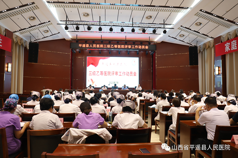 为进一步提升医院综合服务能力,提高医院医疗水平和管理水平,满足人民群众日益增长的医疗服务需求,推动医院高质量发展,7月12日,山西省医院协会理事单位——平遥县人民医院召开三级乙等医院评审工作动员会。平遥县卫健体局党组书记、局长郑继阳,党组成员、副局长曹益强出席会议。平遥县医疗集团党委书记兼县人民医院党总支书记张丽艳主持会议,集团院长兼县人民医院院长郝金福作动员讲话。平遥县人民医院领导班子成员、全体中层正职、各外包公司负责人参会。