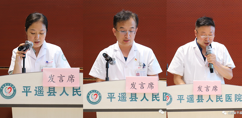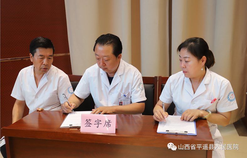 会上,平遥县人民医院与相关科室主任签订责任书,明确科室责任。医务科主任赵晓萍、普外科副主任刘吾斌、检验科主任侯卫勇进行表态发言,表示将坚决服从医院统一部署,以饱满的热情、坚定的信心投入到创建工作中来,通过创建三级乙等医院,不断加强科室内涵建设,全面提高科室管理水平、技术能力和服务水平,为患者提供更精湛的技术和更优质的服务。
